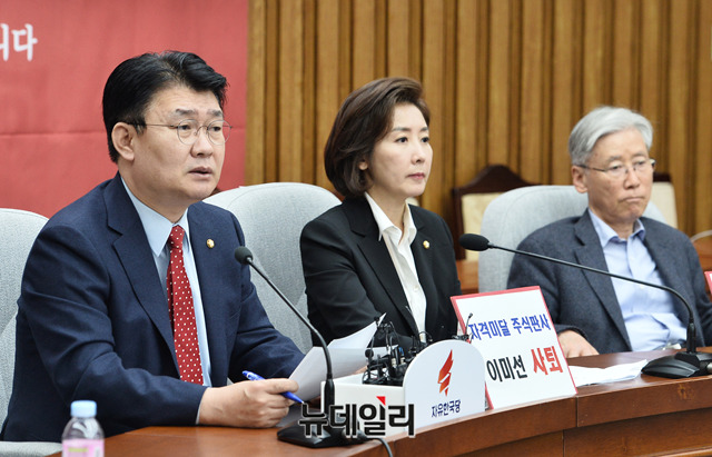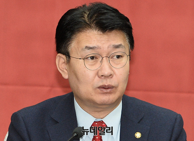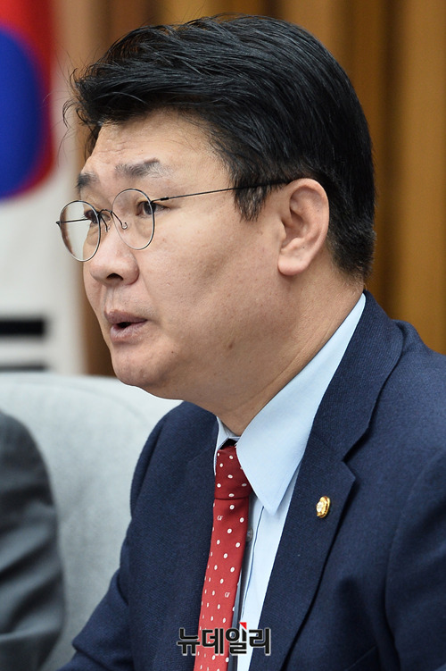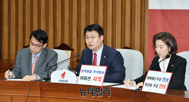 정용기 자유한국당 정책위의장이 19일 오전 국회에서 열린 원내대책회의에서 모두발언을 하고 있다.