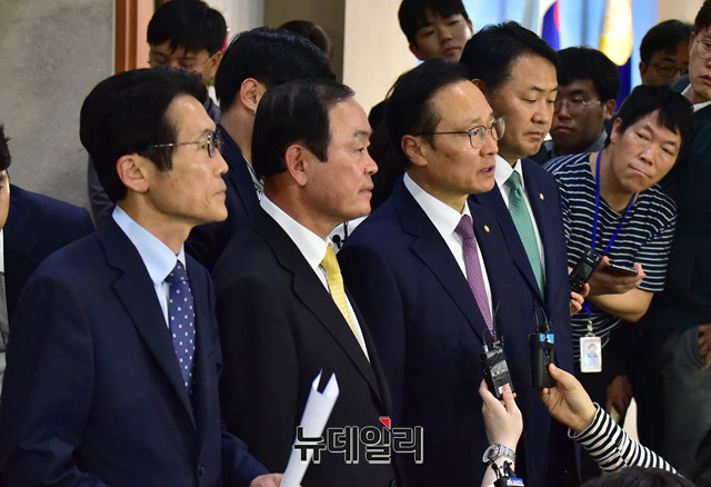 [포토] 기자들의 질문에 답하는 여야 4당 원내대표