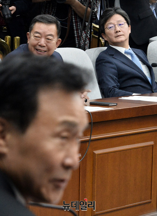손학규 바른미래당 대표와 유승민 의원이 23일 오전 국회에서 열린 바른미래당 제55차 의원총회에 참석해 의총시작을 기다리고 있다.