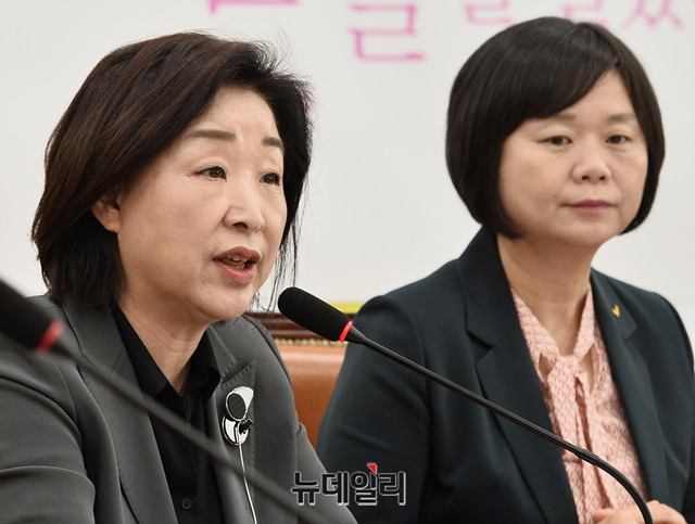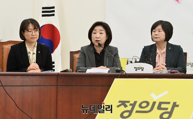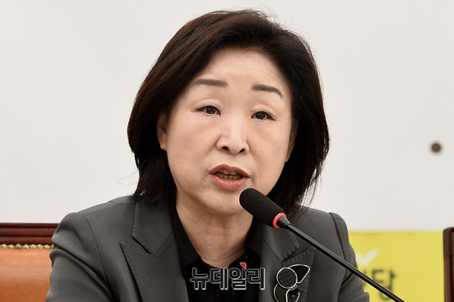 심상정 정의당 의원이 23일 오전 국회에서 열린 의원총회에서 모두발언을 하고 있다.