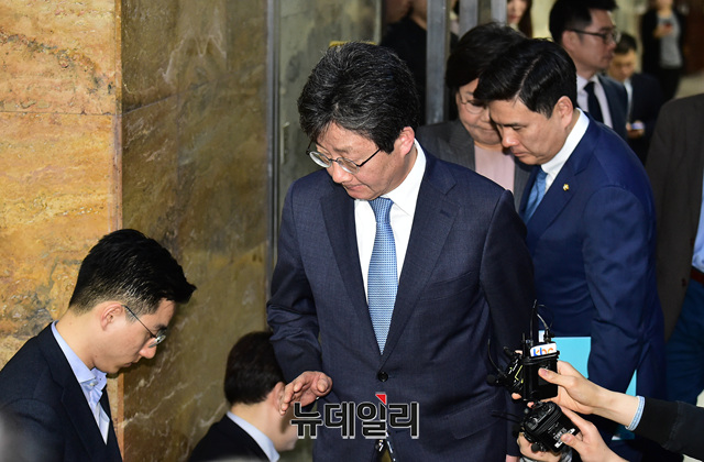 유승민 바른미래당 의원이 23일 국회에서 열린 선거제도·공수처설치를 위한 패스스트랙 당론 결정을 위한 의원총회 후 회의장을 빠져 나가고 있다.