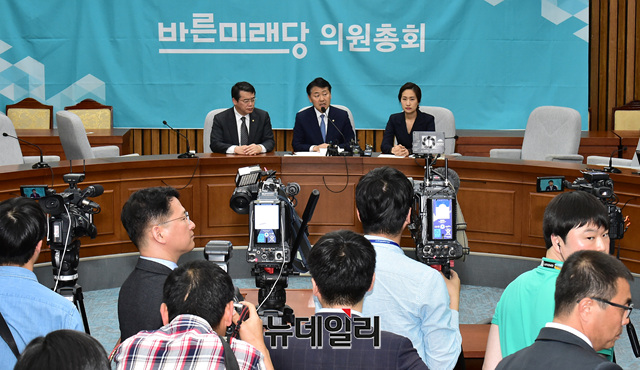 김관영 바른미래당 원내대표가 23일 국회에서 열린 선거제도·공수처설치를 위한 패스스트랙 당론 결정을 위한 의원총회를 마치고 브리핑을 하고 있다.