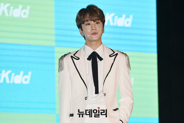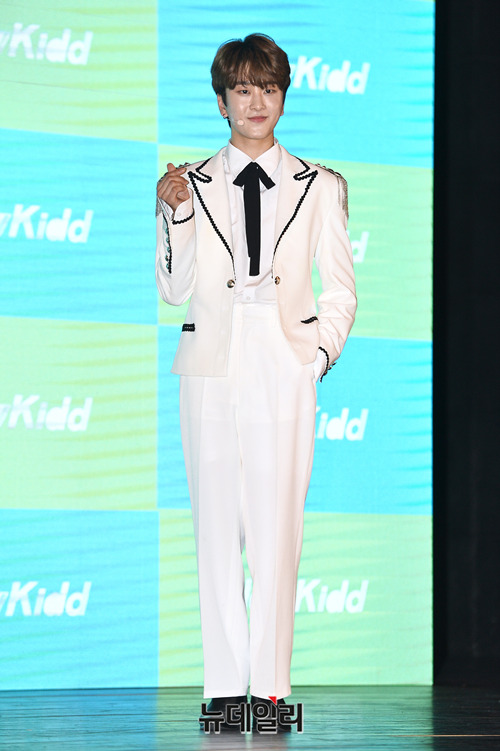 아이돌그룹 '뉴키드' 진권이 23일 오후 서울 중구 롯데피트인 동대문점에서 열린 데뷔앨범 쇼케이스에서 포토타임을 갖고 있다. 타이틀 곡 '뚜에레스(Tu eres)'는 퓨쳐베이스 장르의 댄스곡으로 오후 6시에 공개 된다.
