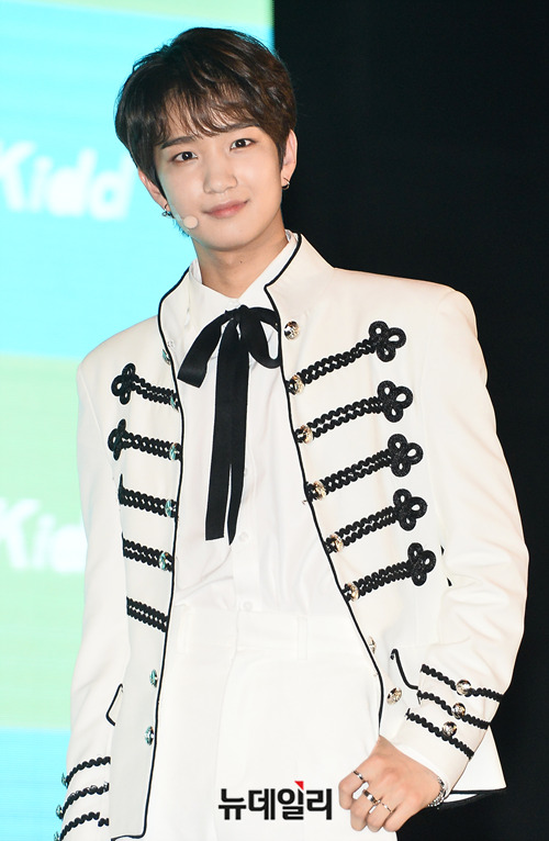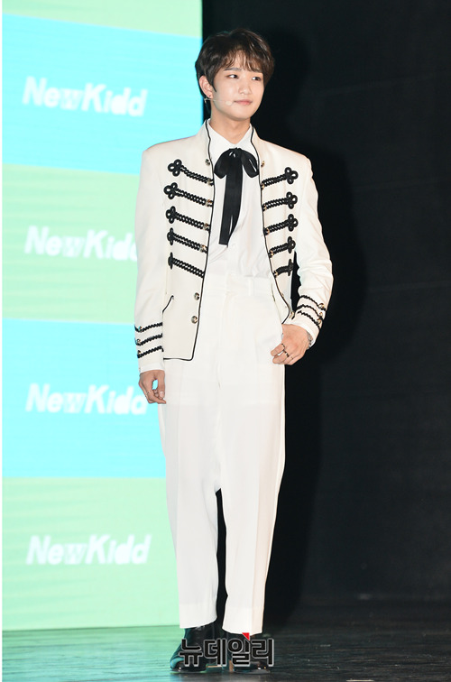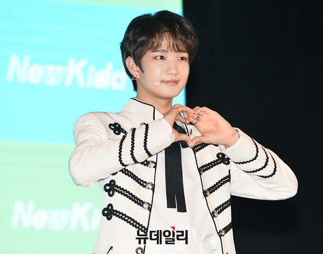 아이돌그룹 '뉴키드' 우철이 23일 오후 서울 중구 롯데피트인 동대문점에서 열린 데뷔앨범 쇼케이스에서 포토타임을 갖고 있다. 타이틀 곡 '뚜에레스(Tu eres)'는 퓨쳐베이스 장르의 댄스곡으로 오후 6시에 공개 된다.