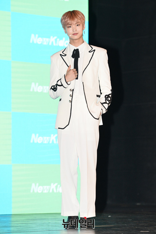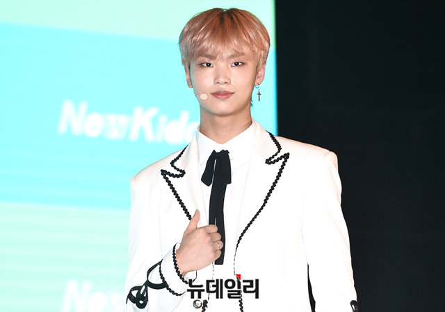 아이돌그룹 '뉴키드' 윤민이 23일 오후 서울 중구 롯데피트인 동대문점에서 열린 데뷔앨범 쇼케이스에서 포토타임을 갖고 있다. 타이틀 곡 '뚜에레스(Tu eres)'는 퓨쳐베이스 장르의 댄스곡으로 오후 6시에 공개 된다.