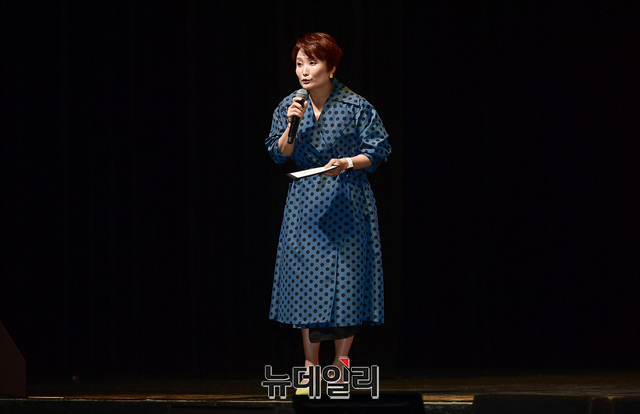방송인 박경림이 24일 오전 서울 광진구 예스24라이브홀에서 열린 7인조 아이돌그룹 '베리베리(VERIVERI)' 2번째 미니앨범 'VERI-ABLE(베리어블)' 쇼케이스에서 사회를 보고있다.