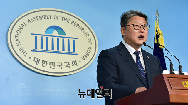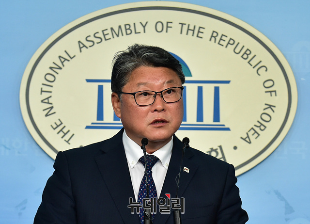 조원진 대한애국당 당대표가 24일 오전 국회 정론관에서 박근혜 전 대통령의 형 집행정지를 촉구관련 기자회견을 갖고 있다.