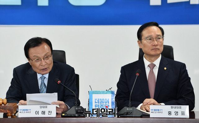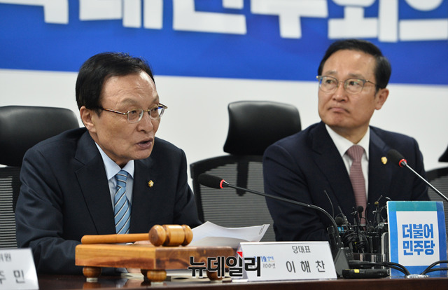 이해찬 더불어민주당 대표가 24일 오전 국회 의원회관에서 열린 확대간부회의에서 모두발언을 하고 있다.
