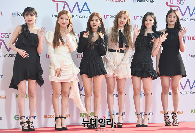 걸그룹 '여자아이들'이 24일 오후 인천 남동구 인천남동체육관에서 열린 'U+5G 더팩트 뮤직 어워즈(THE FACT MUSIC AWARDS)' 에 참석해 포토타임을 갖고 있다. (인천=박성원 기자)
