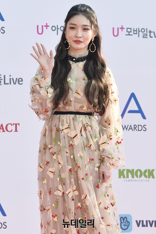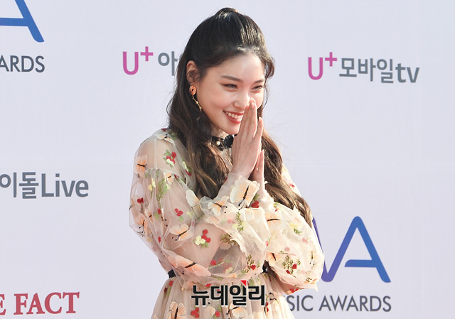 가수 청하가 24일 오후 인천 남동구 남동체육관에서 열린 'U+5G 더팩트 뮤직 어워즈(THE FACT MUSIC AWARDS)'에 참석해 포토타임을 갖고 있다. (인천=박성원 기자)