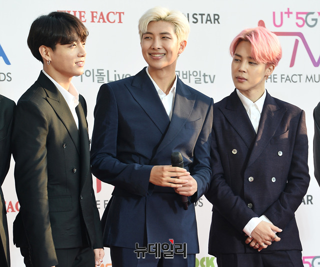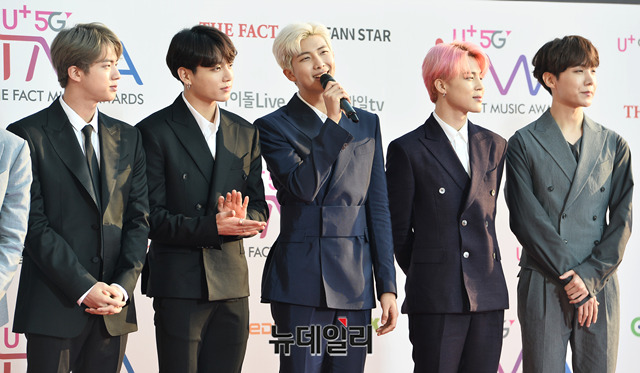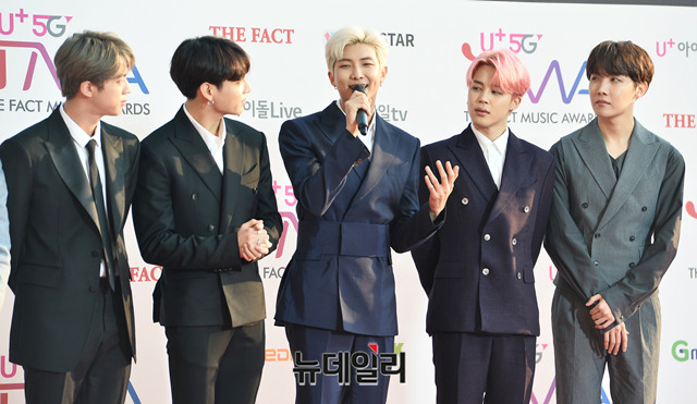 방탄소년단(BTS) RM이 24일 오후 인천 남동구 남동체육관에서 열린 'U+5G 더팩트 뮤직 어워즈(THE FACT MUSIC AWARDS)'에 참석해 인사말을 하고 있다. (인천=박성원 기자)