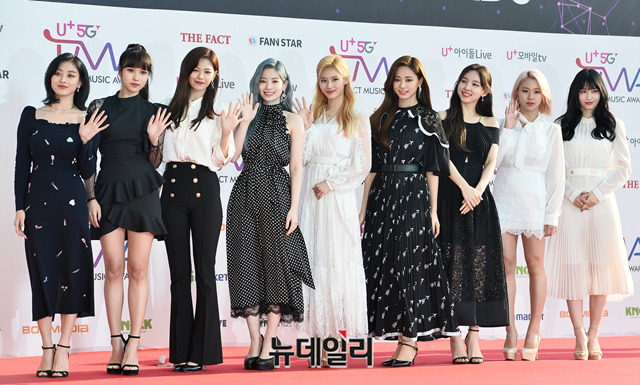 트와이스가 24일 오후 인천 남동구 남동체육관에서 열린 'U+5G 더팩트 뮤직 어워즈(THE FACT MUSIC AWARDS)'에 참석해 포토타임을 갖고 있다. (인천=박성원 기자)