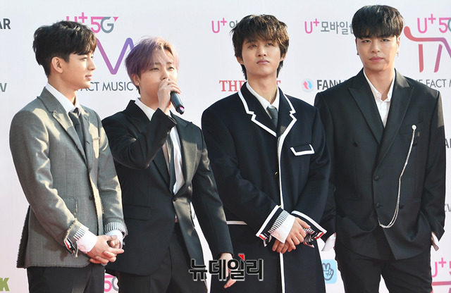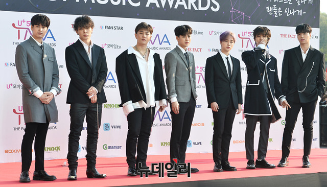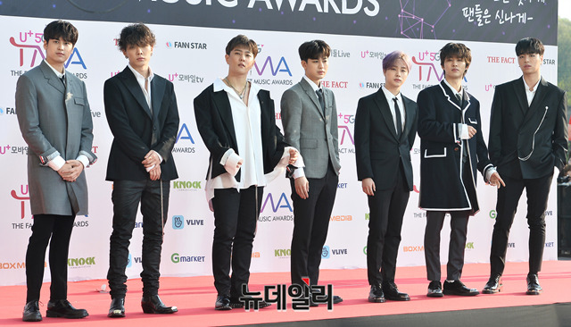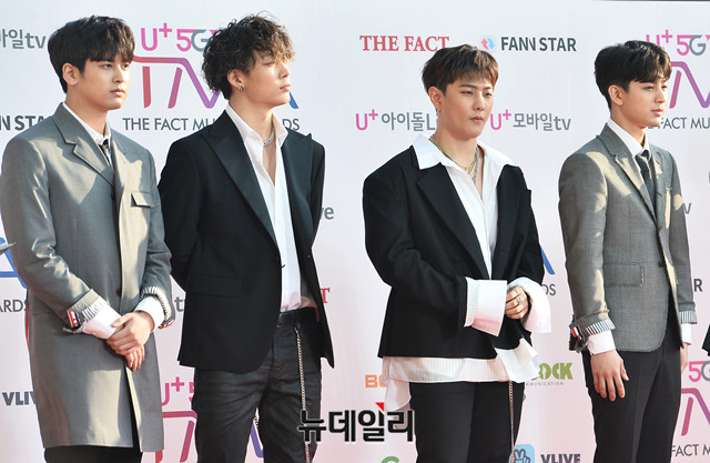 아이돌그룹 아이콘이 24일 오후 인천 남동구 인천남동체육관에서 열린 'U+5G 더팩트 뮤직 어워즈(THE FACT MUSIC AWARDS)'에 참석해 포토타임을 갖고 있다. (인천=박성원 기자)