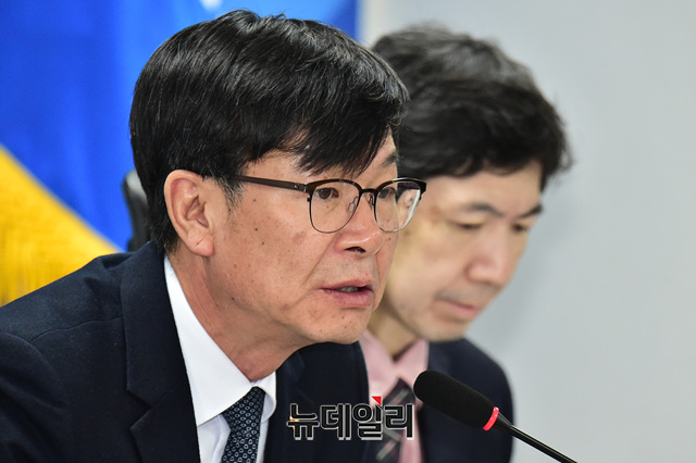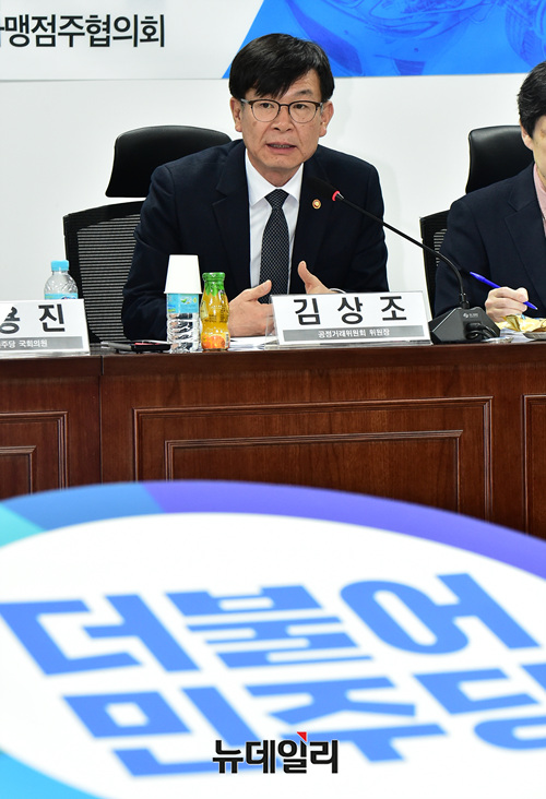 김상조 공정거래 위원장이 25일 오전 국회 의원회관에서 열린 '자동차산업 하도급 5대 불공정행위 근절을 위한 정책간담회'에 참석해 발언을 하고 있다.
