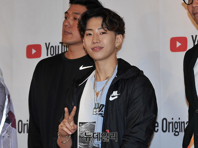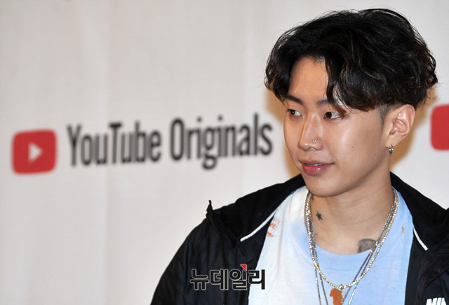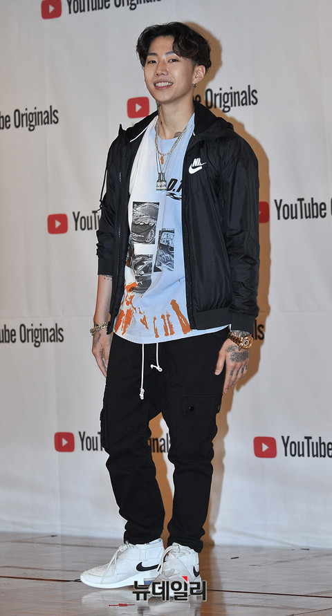 가수 박재범이 25일 오후 서울 중구 롯데호텔에서 열린 유튜브 오리지널 '제이팍 : 쵸즌원(JAY PARK CHOSEN1)' 제작발표회에 참석해 포즈를 취하고 있다.