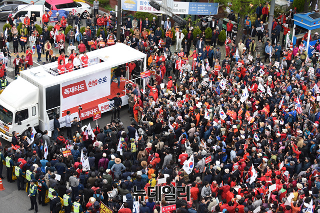 [포토] 청와대 앞 가득 메운 황교안 대표와 집회 참석자들