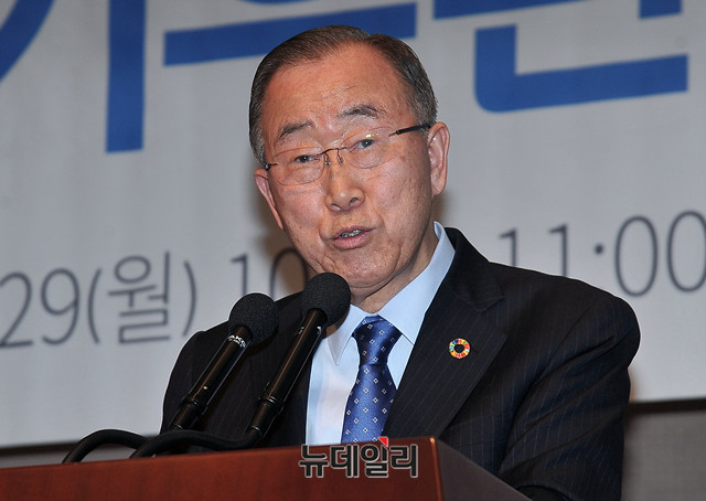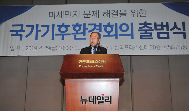 반기문 국가기후환경회의 위원장이 29일 오전 서울 중구 한국프레스센터에서 열린 '미세먼지 문제 해결을 위한 국가기후환경회의 출범식'에서 개회사를 하고 있다.