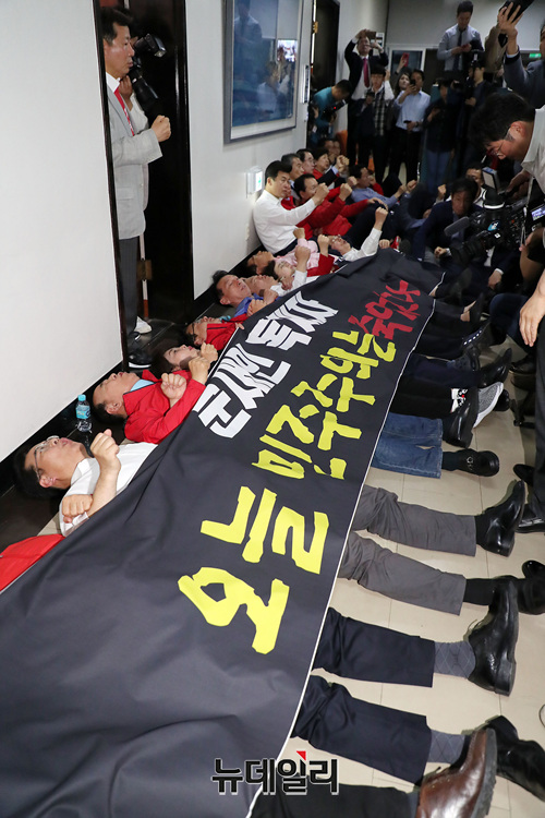 [포토] 바닥에 누운 자유한국당 의원들