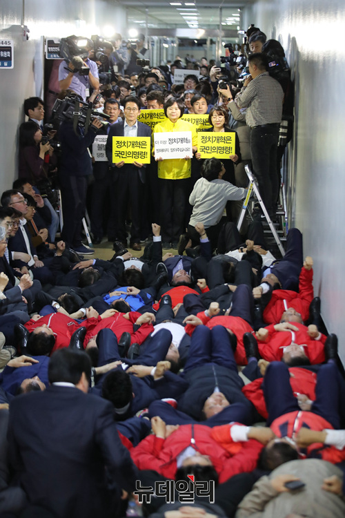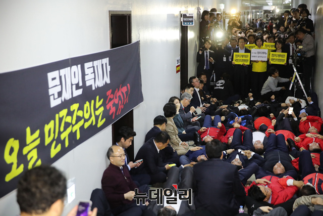[포토] 정개특위 앞에 누운 자유한국당 의원들