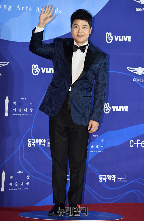 아나운서 전현무가 1일 오후 서울 강남구 코엑스에서 열린 제55회 백상예술대상에 참석해 포토타임을 갖고 있다.