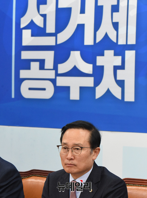홍영표 더불어민주당 원내대표가 2일 오전 국회에서 열린 정책조정회의에 참석해 생각에 잠겨 있다.