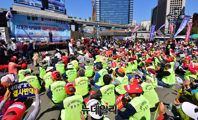 [포토] '4대강 보 해체' 반대하며 서울역에 모인 농민들
