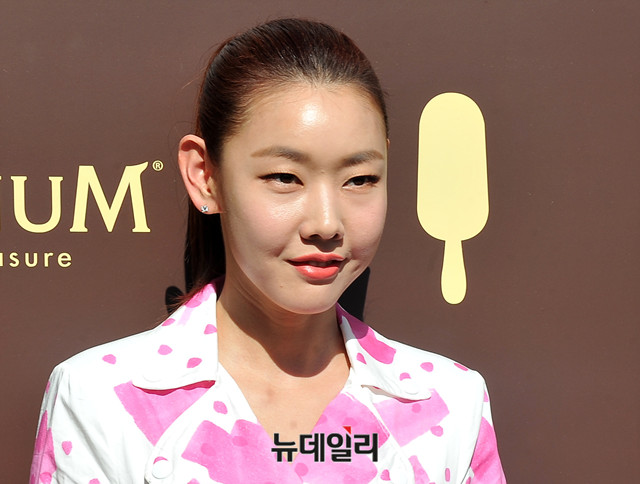 모델 한혜진이 2일 오후 서울 용산구 스튜디오콘크리트에서 열린 아이스크림 브랜드 매그넘(MAGNUM) '파이브센스 뮤지엄' 오프닝 행사에 참석해 기념촬영을 하고 있다.