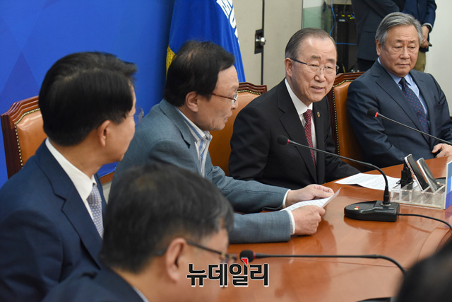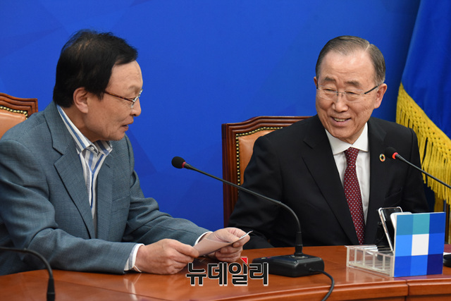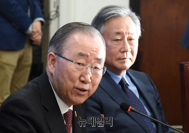 반기문 국가기후환경회의 위원장이 2일 오후 국회를 찾아 이해찬 더불어민주당 대표를 예방하고 환담을 나누고 있다.