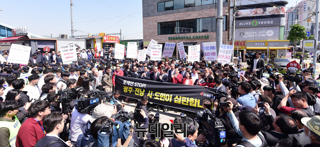자유한국당은 지난 2일 서울·대전·대구·부산지역을 순회하며 文정권 규탄대회를 진행했고, 3일 광주·전주지역에서 규탄대회를 이어가고 있다. (광주=박성원 기자)