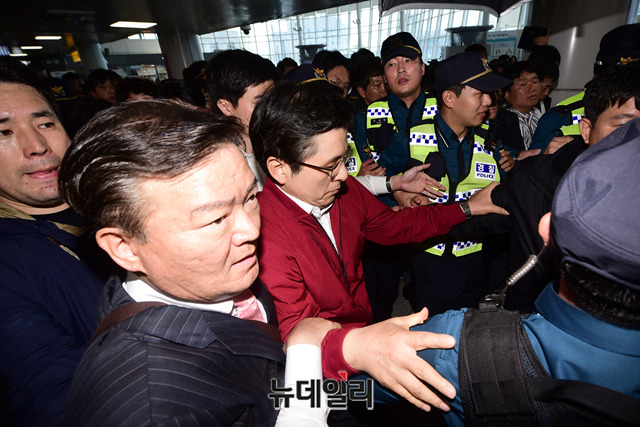 [포토] 광주 간 황교안 대표, 좌파단체 거센 항의에 대피