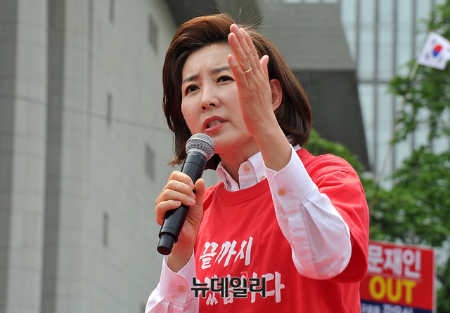 황 대표 옆에 나란히 서서 집회 행진을 이끈 나경원 자유한국당 원내대표도 문재인 정부의 안보정책을 비판했다. 나경원 원내대표는 “문재인 대통령은 (남북정상회담에서) ‘되돌릴 수 없는 평화의 길을 간다’고 말했는데, 그게 지금 되돌릴 수 없는 ‘미사일의 길’로 가고 있다”면서 “(문재인 정권의) 굴종적인 대북정책의 결과가 이것(미사일 발사)라고 지적했다.