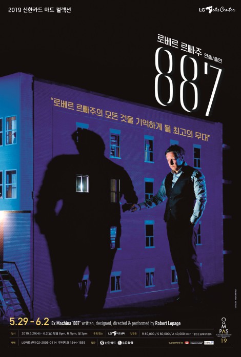 캐나다 출신의 천재 연출가 로베르 르빠주(62)가 12년 만에 한국을 찾는다.로베르 르빠주의 자전적인 이야기에 바탕을 둔 신작 1인극 '887'이 5월 29일부터 6월 2일까지 LG아트센터에서 공연된다.태양의 서커스, 뉴욕 메트로폴리탄 오페라 등과 작업한 르빠주는 '달의 저편'(2003·2018년), '안데르센 프로젝트 (2007년), '바늘과 아편'(2015년) 등의 작품들을 통해 국내 관객들에게 널리 알려진 바 있다.2007년을 마지막으로 내한에 함께하지 못했던 르빠주는 '887'을 통해 처음으로 무대에 직접 출연해 연출가뿐만 아니라 배우로서 탁월한 역량을 발휘하며 지난 기억에 얽힌 이야기들을 흥미롭게 펼쳐 놓는다.제목인 '887'은 르빠주 자신이 어릴 때 살았던 주소에서 따온 것이다. 동시에 7명의 대가족이 부대끼며 살았던 비좁은 아파트, 같은 건물에 살았던 개성 넘치는 이웃들, 익숙한 풍경의 동네와 거리, 도시에 얽힌 모든 기억들이 보관된 내면의 상징적 장소를 의미한다.무대 위에서 빙글빙글 돌아가며 현재의 집, 어린 시절의 아파트 등 여러 가지 공간으로 변신하는 세트와 기억에서 재현해낸 다양한 미니어처 모형들, 낡은 상자 속에 묵혀 있던 옛날 사진과 신문의 이미지들은 생동감과 친밀감을 선사할 예정이다.연극 '887'은 영어와 일부 불어로 공연되며 한국어 자막이 제공된다.