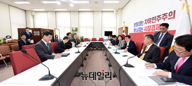 나경원 자유한국당 원내대표가 7일 오전 국회에서 서주석 국방부 차관에게 북한 발사체 관련 보고를 받고 있다.