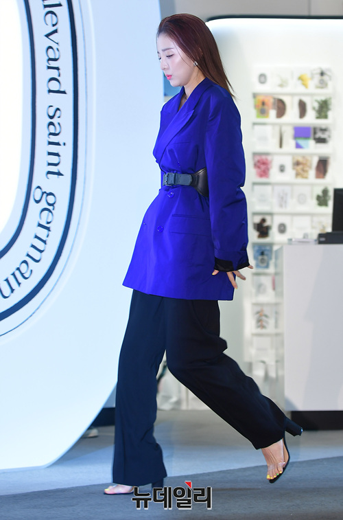 가수 산다라박이 7일 오후 서울 강남구 '딥디크 프래그런스 팝업스토어' 오픈 행사에서 포토타임을 갖고 있다. 신제품 '오 드 민떼 오 드 퍼퓸' 론칭을 기념해 열린 이번 팝업스토어는 6월 14일까지 운영된다.