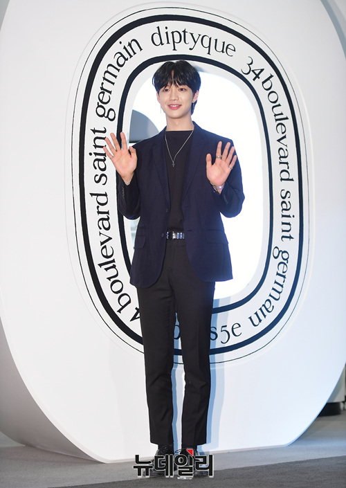 그룹 AB6IX 임영민이 7일 오후 서울 강남구 '딥디크 프래그런스 팝업스토어' 오픈 행사에서 포토타임을 갖고 있다. 신제품 '오 드 민떼 오 드 퍼퓸' 론칭을 기념해 열린 이번 팝업스토어는 6월 14일까지 운영된다.