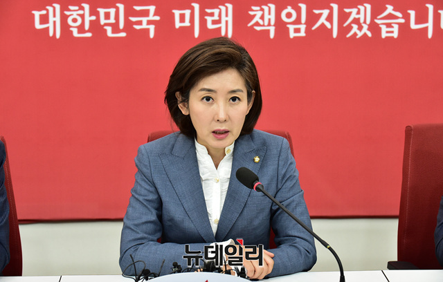 나경원 자유한국당 원내대표가 8일 오전 국회에서 열린 '문다혜 해외이주 의혹 진상조사TF' 전체회의에 참석해 모두발언을 하고 있다.