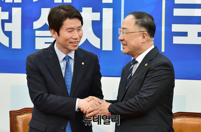 [포토] 이인영 민주당 원내대표 찾은 홍남기 부총리