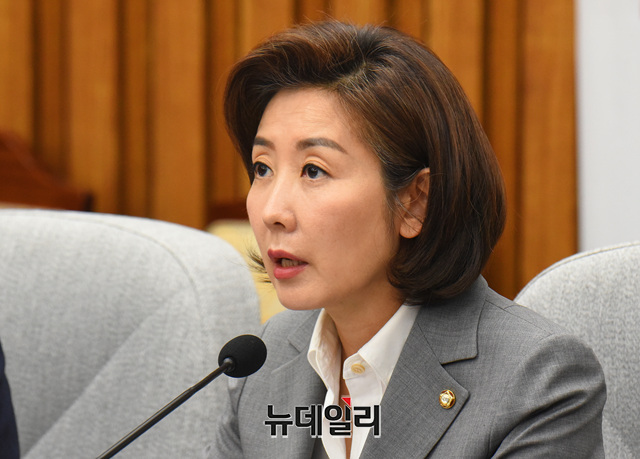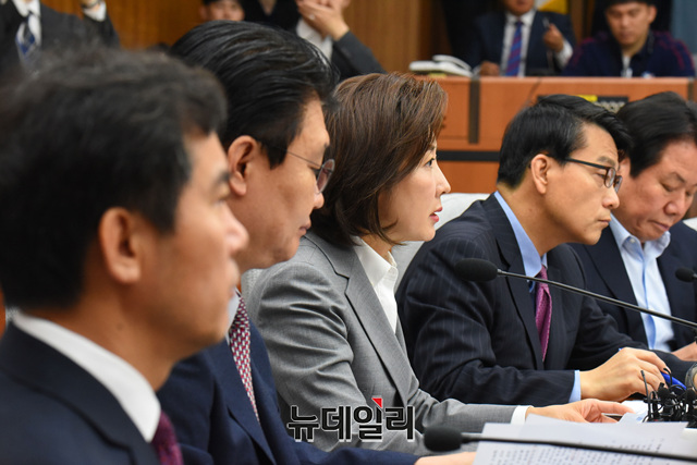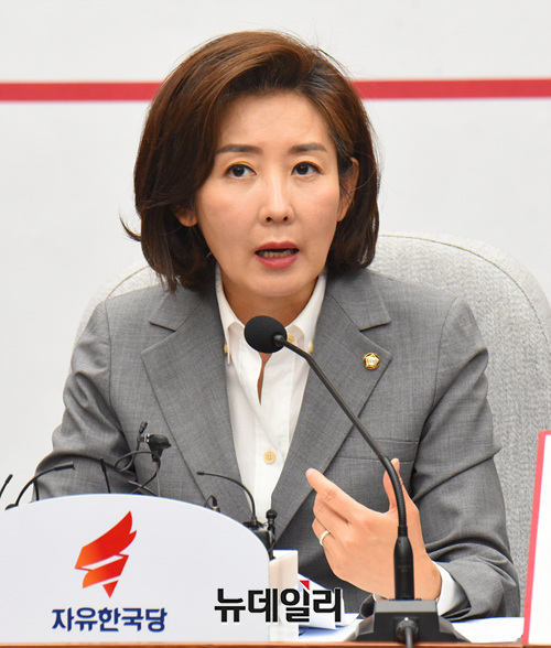 나경원 자유한국당 원내대표가 10일 오전 국회에서 열린 '원내대책 및 북핵외교안보특위 연석회의'에서 모두발언을 하고 있다.