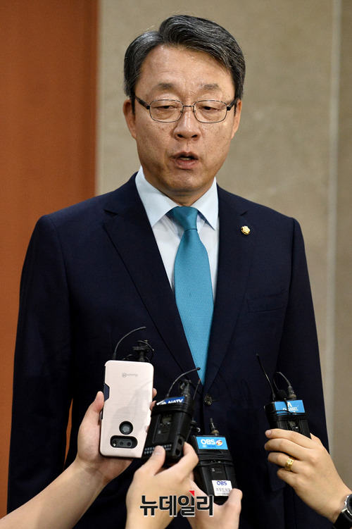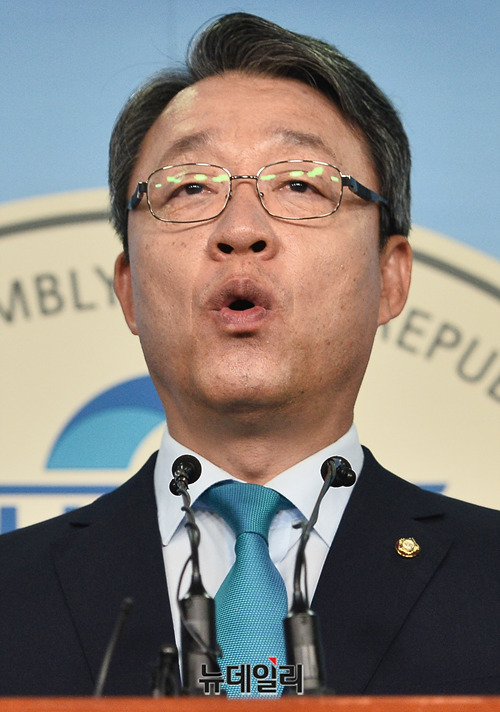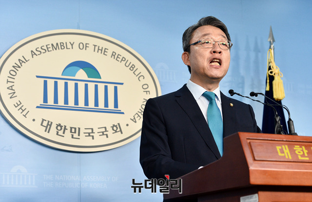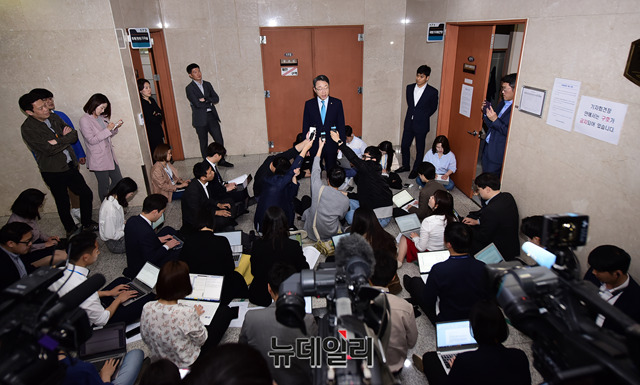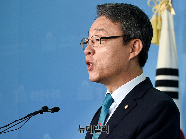 김성식 바른미래당 의원이 13일 오전 국회 정론관에서 원내대표 출마선언 기자회견을 갖고 있다.