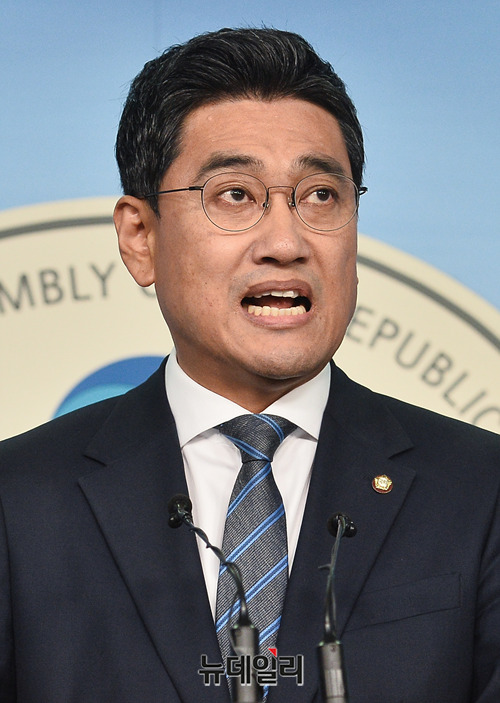 오신환 바른미래당 의원이 13일 오전 국회 정론관에서 원내대표 출마선언 기자회견을 갖고 있다.