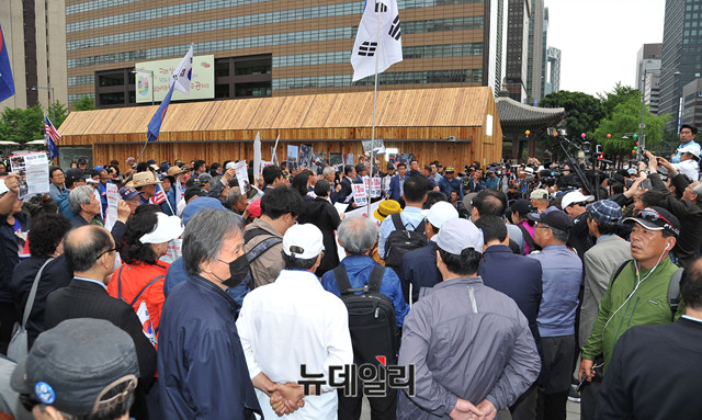 다음은 기자회견 전문이다.대한애국당과 천만인무죄석방본부는 2017년 3월 10일 희생되신 3·10 태극기 애국열사 5인 및 참사사건의 진상규명을 위한 대한애국당의 광화문 광장 텐트투쟁을 방해하는 박원순 서울시장의 즉각 사퇴를 요구한다.대한애국당은 10일 오후에 3·10 태극기 애국열사 5인과 사상자들에 대한 진상규명을 위한 대한애국당 천막을 광화문 광장에 설치했다. 광화문 광장은 국민의 광장, 서울시민의 광장이며 자유민주주의 대한민국에서 표현의 자유, 집회·결사의 자유를 누리는 대한민국 국민들의 장소이다.대한애국당의 진실투쟁, 텐트투쟁을 위해 대한애국당이 천막을 설치하자마자 박원순 서울시장은 공개적인 소셜미디어를 통해서 대한애국당의 천막 설치를 불법적이라 공표하면서 오늘까지 세 차례의 계고장을 보내왔고, 심지어 오늘 오후 8시까지의 자진 철거를 요구하며 강제철거의 의지까지 보이고 있다.2017년 3월 10일 경찰 공권력에 의해 죽음을 당하신 5인의 태극기 애국열사들과 그 외 부상자들에 대한 진상 규명은 문재인 좌파독재정권 하에서 철저히 외면당해왔고, 보수우파 진영에서조차 제대로 진행되지 못했다. 대한애국당은 2018년 3월 10일에도, 2018년 국정감사 때도 대한애국당 조원진 대표가 소방청의 자료를 요구하며, 진상 규명의 노력을 멈추지 않았고, 2019년 3월 10일 5인 열사 추모제 때도 진상 규명과 책임자 처벌에 대한 강력한 행동 의지를 선언했었다.공권력에 의한 살인, 촛불집회가 아니라 태극기집회에서 불법거짓사기 탄핵에 저항하셨다는 이유로 죽음을 당하신 5인의 태극기 애국열사는 대한민국 국민이 아닌가? 촛불집회 참여자는 존중되어야 하고, 보수우파 태극기 애국국민의 억울하고 이유 없는 죽음이 이대로 묻혀버려야 한단 말인가?대한민국의 2017년 3월 10일 백주대낮에 대한민국 경찰에 의해 국민이 5명이나 죽임을 당했는데, 이 끔찍한 비극을 어떻게 진상 규명하지 않고 그대로 넘어가자는 것인가? 아무도, 이 진실의 문을 열지 않았다. 대한애국당이 이제 진실과 정의의 문을 열고 진상 규명과 책임자 처벌을 요구하는 것이다.2017년 3월 10일 당시의 태극기 애국열사 5인에 대한 책임은 일차적으로 박원순 서울시장에게 있다. 당시 경찰청장, 서울지방경찰청장에게 있다. 우리 대한애국당은 억울한 국민의 죽음에 대한 사실, 진상 조사와 책임의 소재를 밝히자는 것이다.사태의 주 책임이 있는 박원순 시장이 자신이 관련된 사태의 진상 규명 천막 설치를 불법이라 규정하며, 방해하고 철거하려는 것은 말이 되지도 않고 용납할 수 없는 일이다.촛불, 좌파진영의 행사에는 광화문광장이 마치 좌파의 성역인 양, 그들의 전유물인 양 수년 간 사용하게 하고, 절차 무시, 법치 무시하며 자의적 사용을 허가했으면서, 이제 와서 대한애국당의 진실투쟁을 위한 천막 설치를 ‘불법의 대명사’인 듯이 취급하며 여론몰이 하는 것은 이중 잣대요, 부당하며, 문재인 좌파독재정권 하의 또 다른 불의의 증거이다. 형평성을 파괴하고 좌파진영에만 광장 허가를 하는 박원순 시장의 자의적 독단과 중립성 위반을 규탄한다.박원순 시장은 더 이상 대한애국당의 진상 규명 노력, 진실투쟁을 방해하지 말라. 더 이상의 강제적 물리력 사용은 박원순 시장의 직권 남용이 될 것이다. 방해를 하지 말고, 3·10 참사에 대한 책임을 지고 즉각 사퇴하는 것이 맞다.대한애국당은 3·10 진상 규명과 책임자 처벌을 위한 진실투쟁, 텐트투쟁을 대한애국당의 요구사항이 관철되고 이루어질 때까지 계속할 것이다. 대한애국당은 멈춤 없이 전진할 것이다. 당원동지들, 애국국민들의 결사적인 동참을 바란다. 대한애국당과 함께 반드시 진실의 승리를 이루자.책임을 지고, 즉각 사퇴할 것을 요구한다.2019년 5월 13일대한애국당박태우 사무총장 및 당원들천만인무죄석방본부 회원들 일동