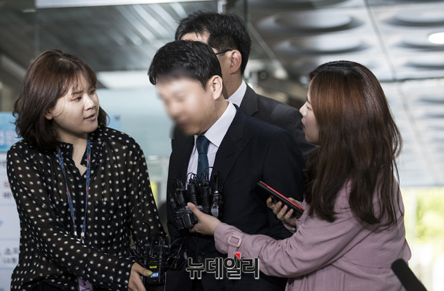 성매매 알선, 버닝썬 자금 횡령 등의 혐의를 받는 유인석 유리홀딩스 전 대표가 14일 오전 서울 서초구 서울중앙지법에서 열린 영장실질심사에 출석하고 있다.