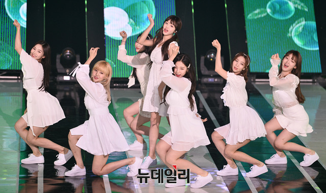걸그룹 오마이걸이 14일 오후 서울 마포구 SBS 프리즘타워에서 열린 SBS MTV '더 쇼(THE SHOW)' 생방송에서 무대를 선보이고 있다.