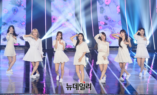 걸그룹 오마이걸이 14일 오후 서울 마포구 SBS 프리즘타워에서 열린 SBS MTV '더 쇼(THE SHOW)' 생방송에서 무대를 선보이고 있다.