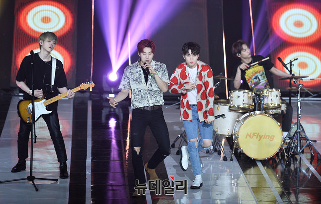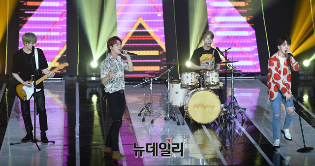 밴드 엔플라잉이 14일 오후 서울 마포구 SBS 프리즘타워에서 열린 SBS MTV '더 쇼(THE SHOW)' 생방송에서 무대를 선보이고 있다.