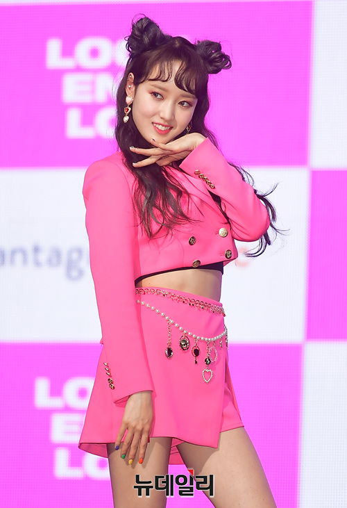 걸그룹 위키미키(Weki Meki) 세이가 14일 오후 서울 용산구 블루스퀘어에서 열린 2번째 싱글앨범 'LOCK END LOL(락앤롤)' 쇼케이스에서 포토타임을 갖고 있다.