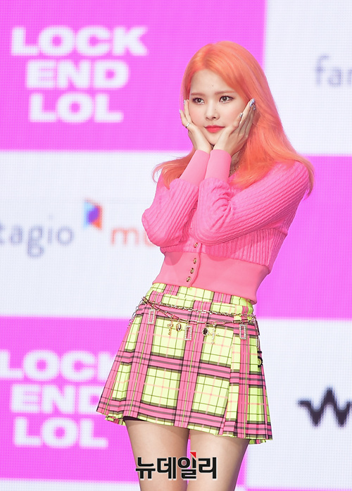 걸그룹 위키미키(Weki Meki) 리나가 14일 오후 서울 용산구 블루스퀘어에서 열린 2번째 싱글앨범 'LOCK END LOL(락앤롤)' 쇼케이스에서 포토타임을 갖고 있다.