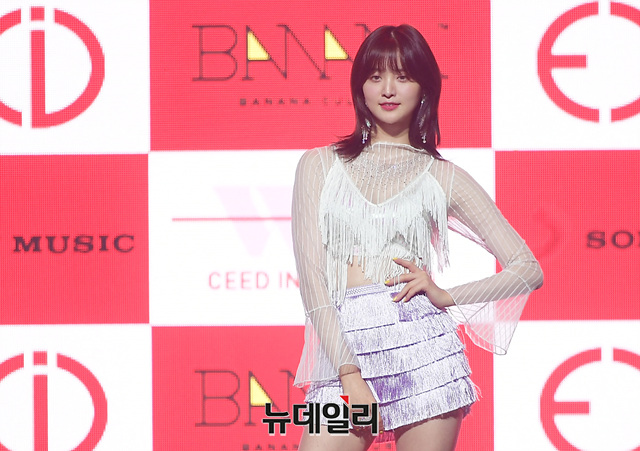 걸그룹 'EXID(이엑스아이디)' 정화가 15일 오후 서울 용산구 블루스퀘어에서 열린 새 미니앨범 'WE(위)' 쇼케이스에서 포토타임을 갖고 있다.