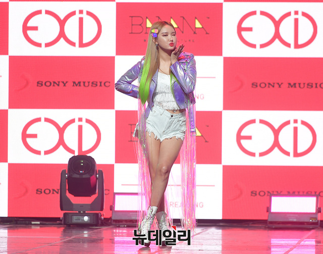 걸그룹 'EXID(이엑스아이디)' LE가 15일 오후 서울 용산구 블루스퀘어에서 열린 새 미니앨범 'WE(위)' 쇼케이스에서 포토타임을 갖고 있다.