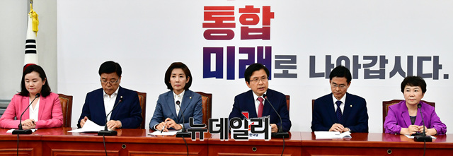 황교안 자유한국당 대표가 16일 오후 국회에서 열린 최고위원회의에서 모두발언을 하고 있다.